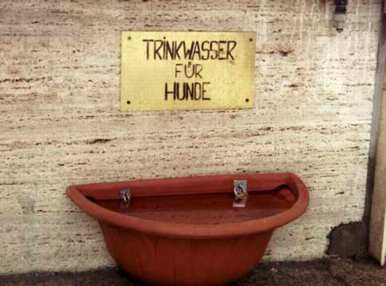 | The city of Innsbruck was the site of several Winter Olympics. It is a very old city. Outside of a jewelry shop appears this trough for dogs to get a drink of water. |  |