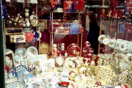 | There is a chocolate shop filled with chocolates with Mozart's picture on them. |  |