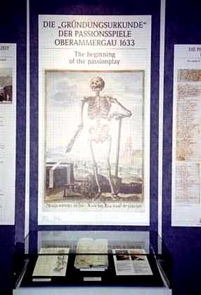 | Oberammergau is a small village in which a world famous reenactment of the Passion of Jesus takes place every ten years. This play was begun in 1633 at the time of the Black Plague as thanksgiving for saving the people of the village. Most of the villagers take some part in the play, either as cast members or helping with costumes and scenery. Many of the houses in the village have religious scenes painted on their walls. |